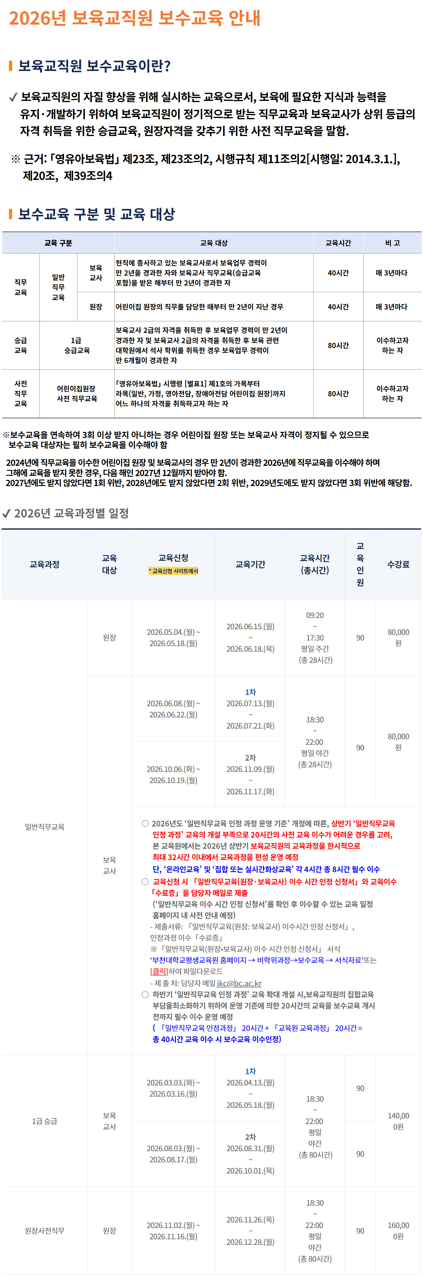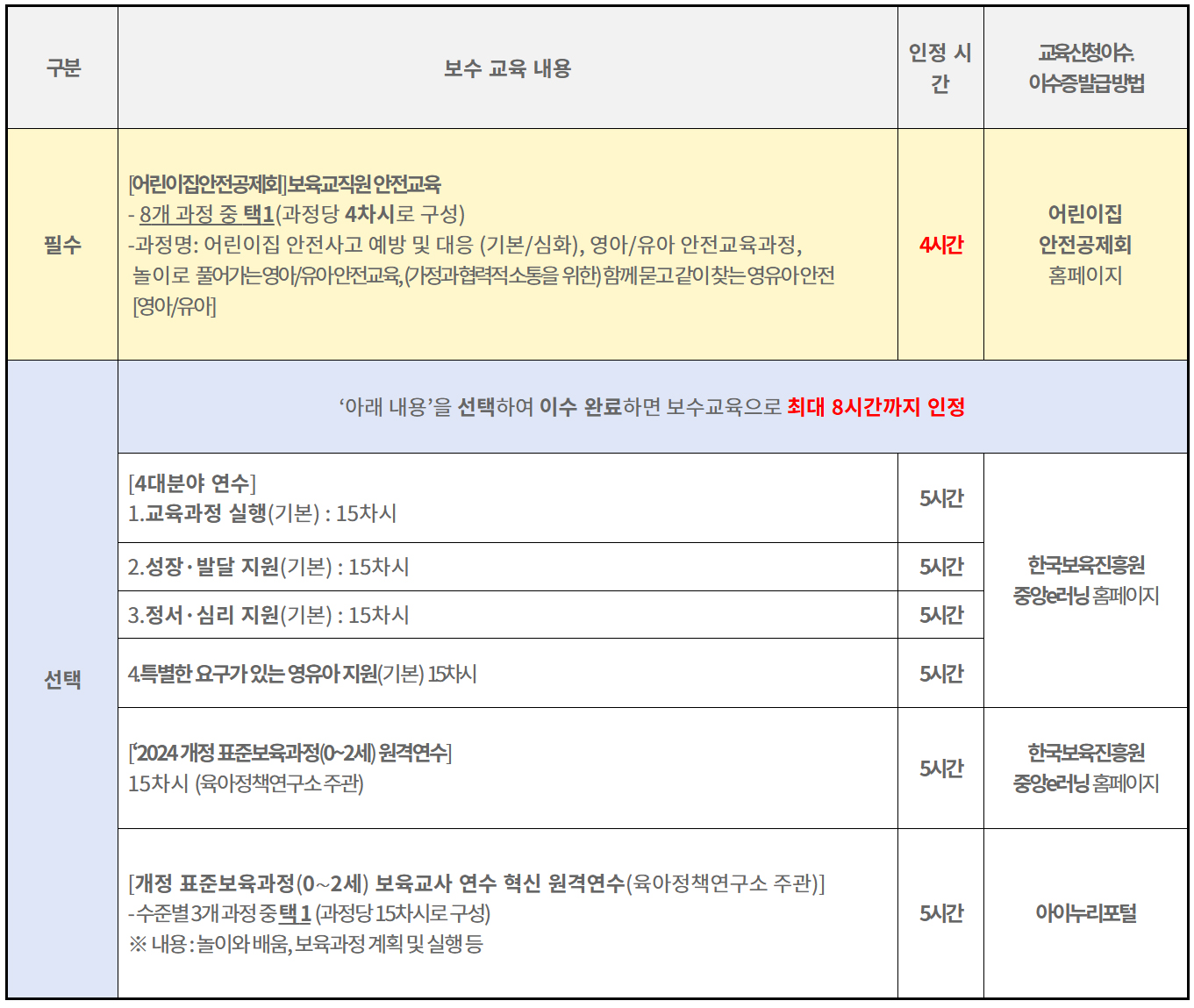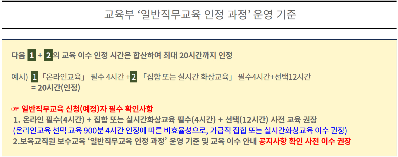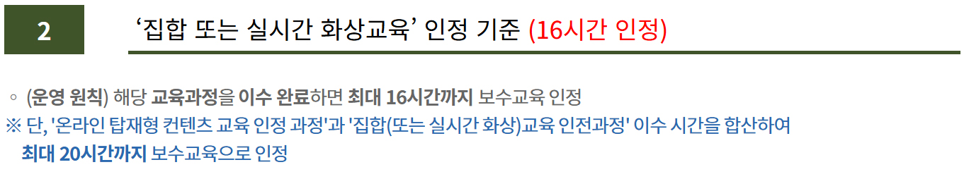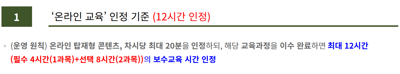 ✔ 환불 : 보수교육 시작 후 보수교육기관의 귀책사유가 아닌 보수교육 대상자의 귀책사유로 미수료한 경우에는 교육비용 환불 불가